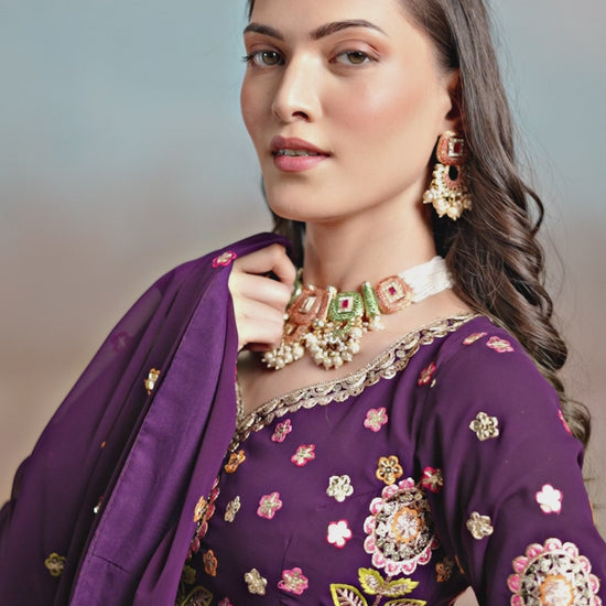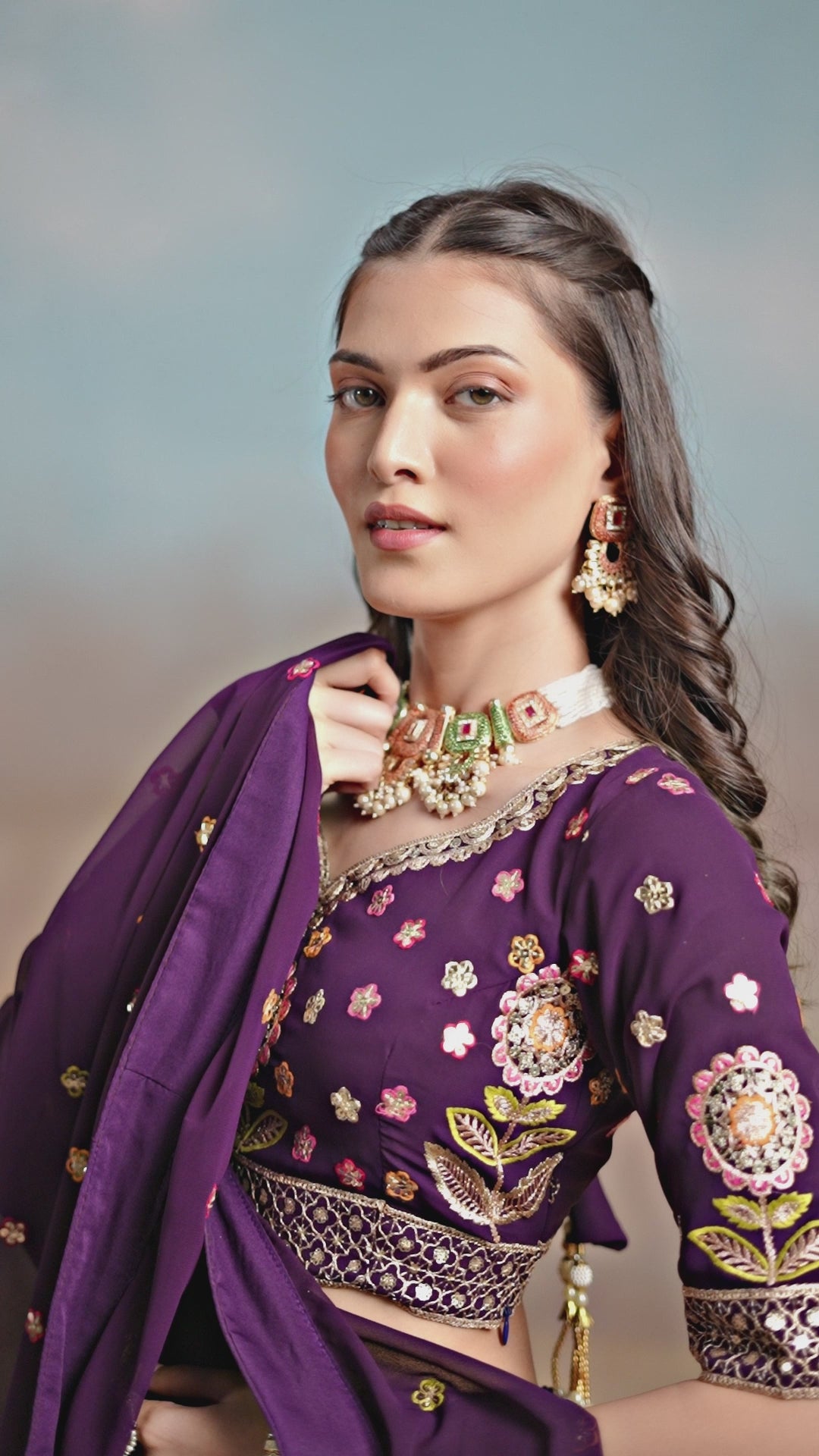 “A stunning Purple embroidered lehenga choli with dupatta, perfect for weddings, parties, and festive occasions.”
