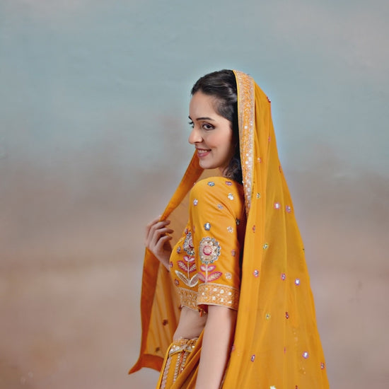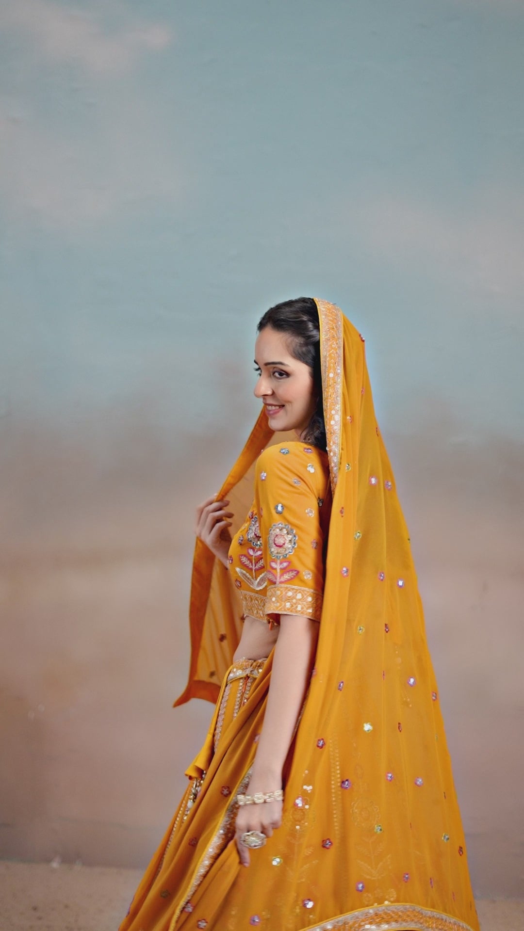 “A stunning Yellow embroidered lehenga choli with dupatta, perfect for weddings, parties, and festive occasions.”