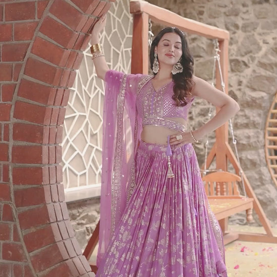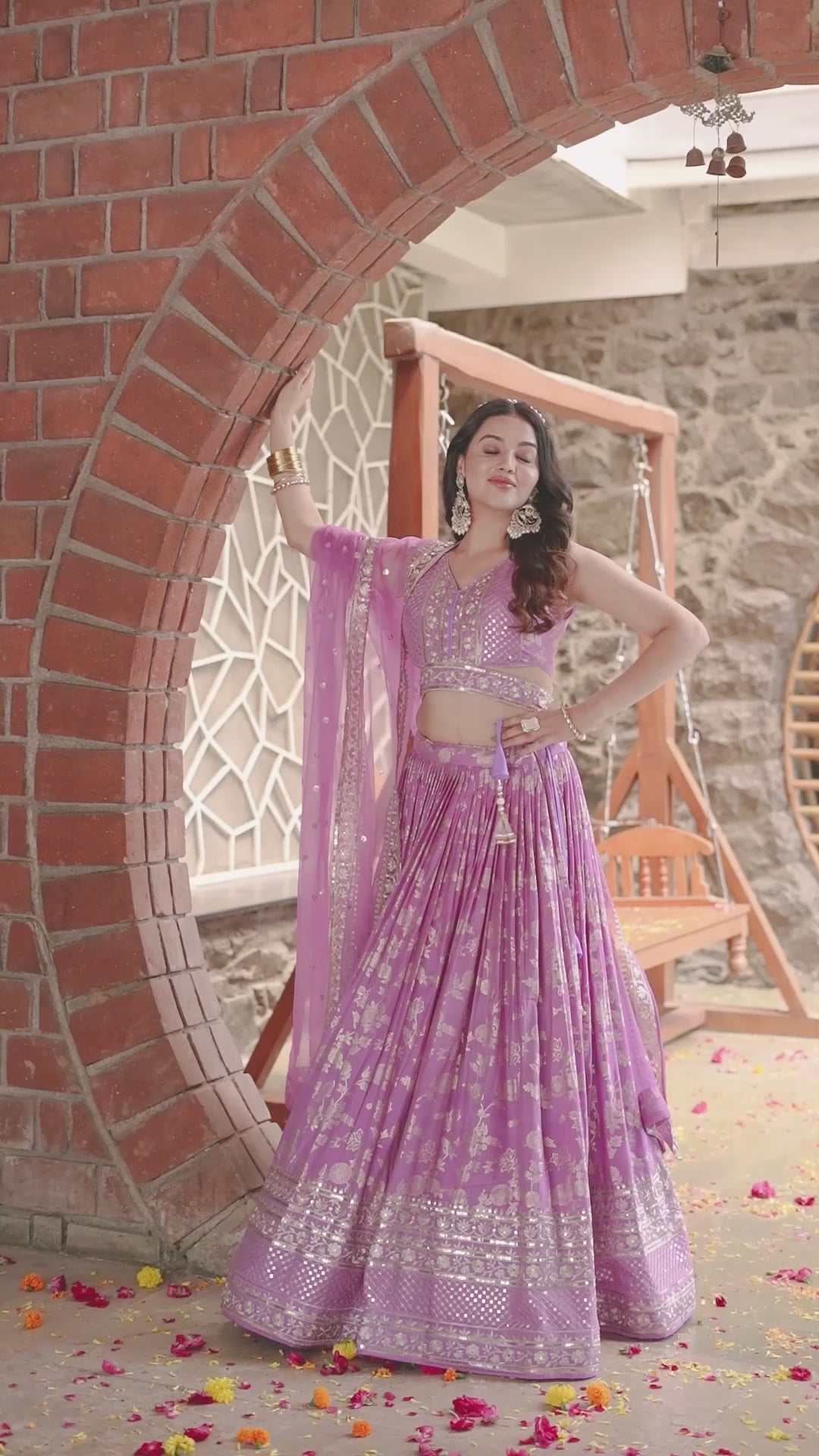 “A stunning Lavender embroidered lehenga choli with dupatta, perfect for weddings, parties, and festive occasions.”
