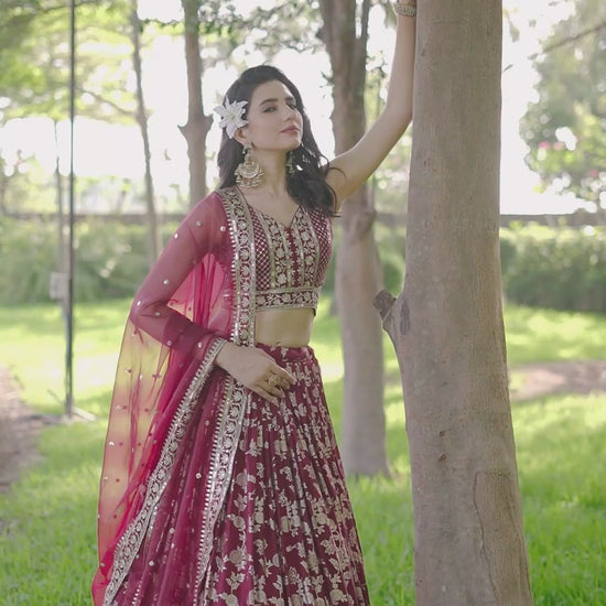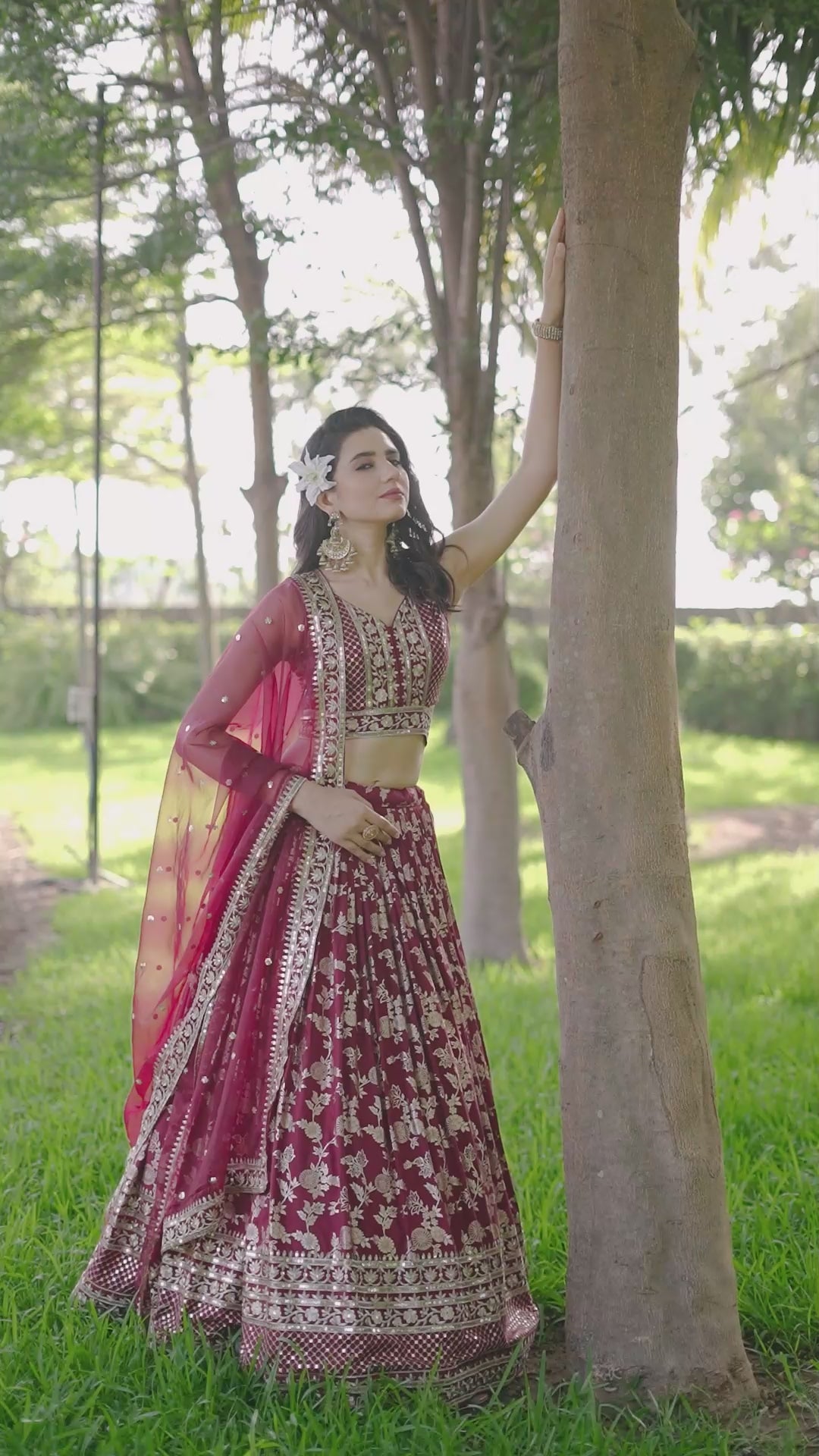 “A stunning Maroon embroidered lehenga choli with dupatta, perfect for weddings, parties, and festive occasions.”
